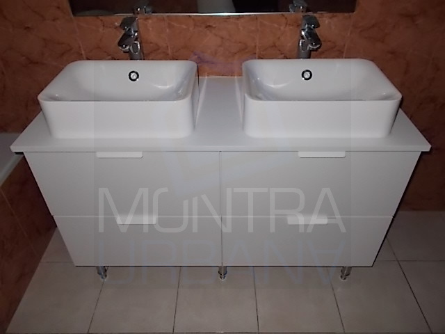 ... Móvel de Apoio Lacado, 2 Lavatórios e Espelho